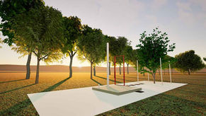 このベンチへのアプローチは、北側に接続された既設園路から行うが、北東に位置する記念碑の同心円状に“飛石”を配置した。それに誘われて奥へと歩を進めるとハート形の飛石に辿り着く。行き止まりの“ハートの飛石”で振り返ると、ベンチの縦のスリットにハートの形が浮かびあがる。(上部パース参照)このハートは、“ラブベンチの方位軸”でしか見出すことができず、このベンチがラブベンチたる所以の一つである。(北側園路からではわからない:立面参照)